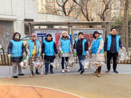 2025年2月27日北京建筑业人力资源协会党支部组织员工参加“安慧里北社区环境清洁日”活动。